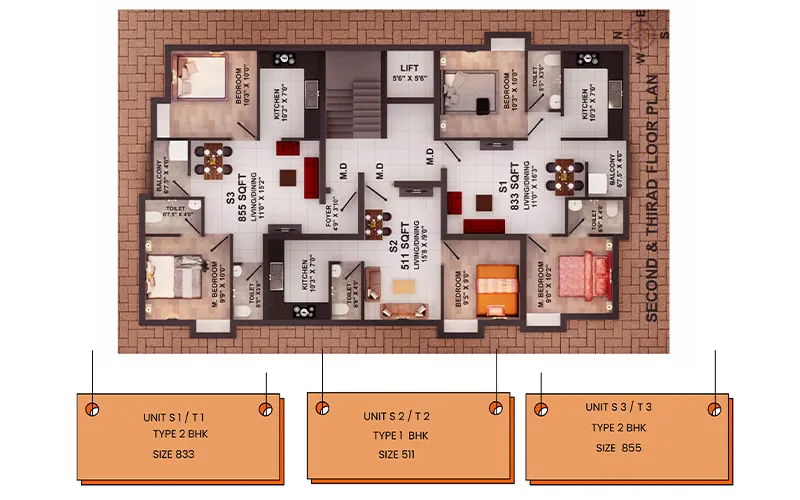 | S1 | 2BHK | 833 sqft | North | Sold |